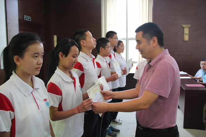 2015年6月11日下午,我校在学术厅进行了2014-2015学年度课外活动表彰大会。会议由学生工作部雷国亮主任主持。郑长宏老师对选修课进行了总结。李中萍老师对健美操选修课的精彩进行了分享。2017届10班学生代表杨骏骁同学也就参与“玩转机器人”选修课的体会与收获进行了有意义的交流。大会对过去一段时间里在课外活动中表现优秀的同学以及在选修课中表现积极的同学和老师进行鼓励和表彰。