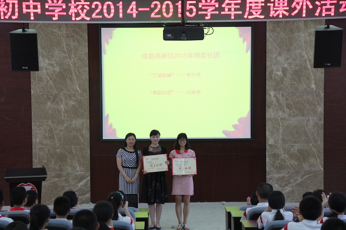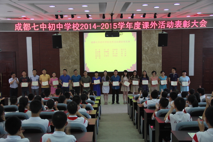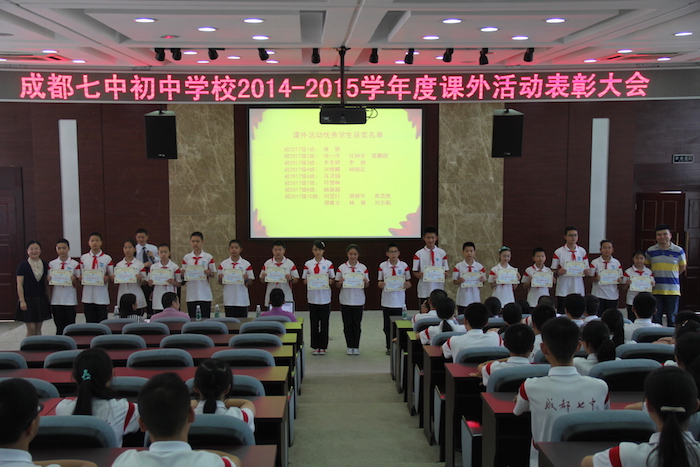 所有得到表彰的老师和同学脸上带着欢乐满足的笑容,任何的奖项都是对劳动过程和结果的肯定。无论是数学竞赛一等奖,英语口语金奖,或是物理竞赛一等奖、艺术体育类的一等奖,所有奖项都来自于课外的刻苦努力与智慧付出。在上台领奖的过程中,同学们的脸上洋溢着幸福和成就,而同样看着这骄傲瞬间的还有亲爱的老师和共处的同学,他们也同样为自己的同学自豪。当然,不仅是学生领奖,我们的老师也领了奖的呢!优秀的选修课指导老师,还有明星社团的“明星代言人”李中萍老师与马依婷老师都获得了表彰。“你有多大能耐,给你多大舞台”,我们在七初快乐健康地成长。