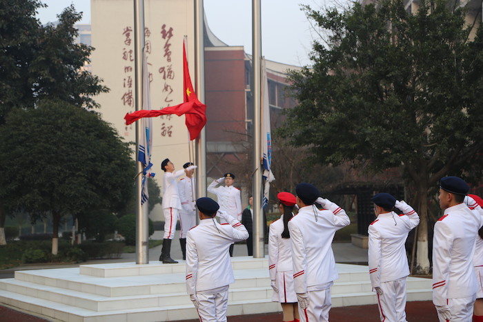启动仪式开始,2018届5班的同学进行了国学诵读,将奉献、友爱、互助、友善等中华民族的优秀传统,以诗词歌赋的形式表现出来。而后,来自国家电网四川省电力公司应急办公研究室副主任,清华大学四川(成都)校友会校友,邓创先生进行了讲话。邓创先生精彩的讲话,为我们更好地诠释了无私奉献和感恩互助的意义。成都市阳光志愿者联盟成员还向我们进行了授牌、授旗仪式。来自学生会的来钰开和大队部的罗雪萍同学在李校非校长的带领下代表我校接牌。之后,2018届6班的学生代表胡艺萌同学进行了发言,让我们明白了“服务他人,成长自己”是要从我们身边的小事做起。最后,学校大队部干部,四川博物馆志愿讲解员廖梓萱同学带领大家在国旗下庄严宣誓。此刻起,学校全体师生都成为了志愿者队伍中的一员。
