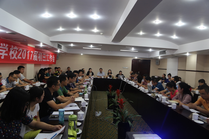 本次初三工作会由教学管理部主任王岚老师主持,除2017届老师以外,学校行政领导及部分2016届教师也参加了会议。