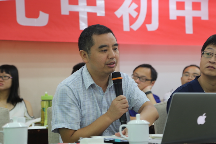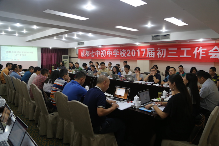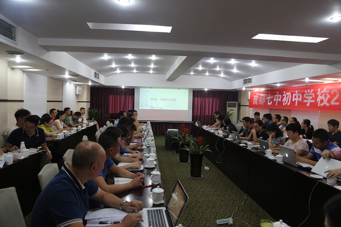 26日下午,新初三的老师们在前几届初三老师宝贵经验的基础之上,结合年级实际,开展了扎实有效的分组讨论。以语文组为例,杜明元老师先分析了中考阅卷情况,又分享了2016届的中考备战实战经验。在随后的讨论中,2017级备课组长巫增金老师带领备课组内老师进行了充分研讨,对九年级上期的集体备课工作进行了细致的安排。8月27日上午,张新民副校长就近几年的中考情况作了全面理性的分析,张校长做了主题为“传承、突破与超越”的发言,让每位参会老师看到了我校辉煌的中考成绩背后所凝聚的七初人的辛勤努力和无私奉献,针对本届初三工作,张校长希望2017届年级组能统一目标,凝聚共识,团结协作,续写辉煌。