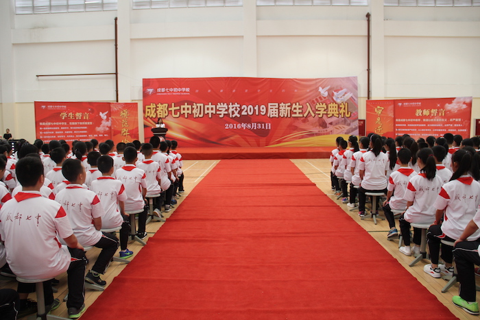 8月31日下午4点,成都七中初中学校体育馆内2019届全体师生和学生家长隆重举行2019届新生入学典礼。典礼由学生工作部孙余副主任主持。