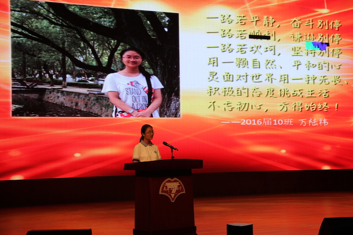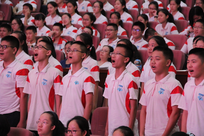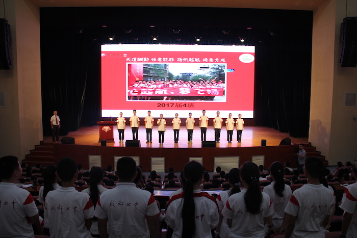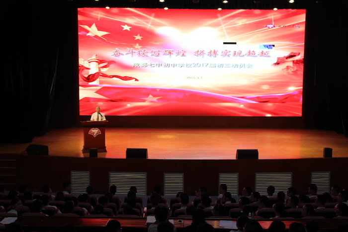 “又是一年开学季,秋已来,人未离;冬青疯长,艳阳如期,相聚人心齐,并肩行。花开花谢总关情,紫薇红,石榴去;菁菁校园,七初学子,鹏程千万里,揽天地!”2016年9月1日下午,伴随着斗志昂扬、催人奋进的歌曲《怒放的生命》,我校主题为“奋斗续写辉煌拼搏实现超越”的2017届初三动员会在音乐厅隆重举行,本次初三动员会由2017届年级组长王翔宇老师主持。