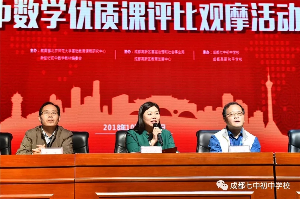 2018年10月12日,众多师者汇聚成都七中初中学校,在这金秋时节完成一次数学的素心之会。上午,学校的音乐厅座无虚席,老师们都早早进入会场,共同期待着第七届新世纪杯全国初中数学优质课展活动的开始。