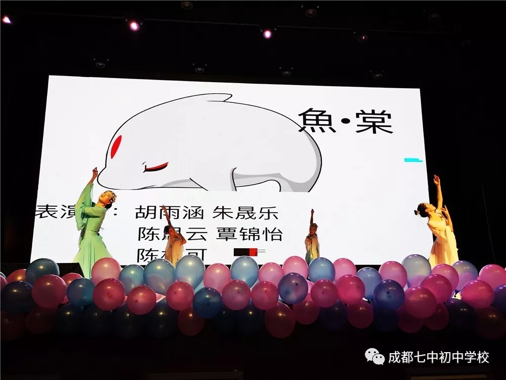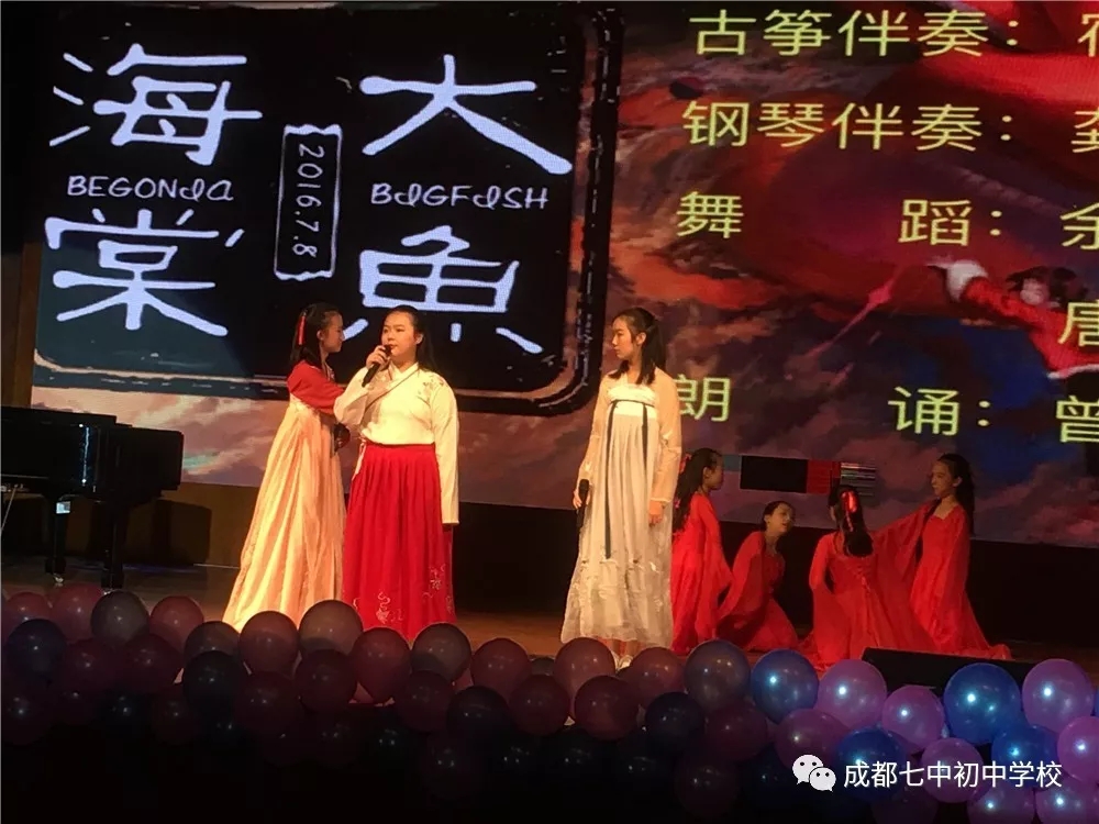 紧接着由两个班11位同学用朗诵、乐器、舞蹈的方式,为我们还原了《大鱼海棠》梦幻般的世界。电影中的奇异世界,传统艺术,以及明艳的画面效果,回味无穷。