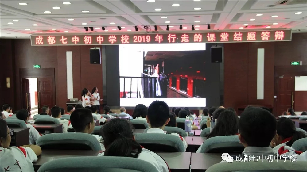 沐浴夏日“和煦”的阳光,呼吸自然清新的空气。成都七中初中学校2018-2019学年研学旅行课程——“行走的课堂”研究性课题结题答辩会如期拉开帷幕。在行走的课堂实践研究过程中,同学们打破学习的时空限制,在参与体验中格物致知,发现问题,探究问题,解决问题。整个结题答辩会精彩纷呈,四个答辩分会场不时爆发出热烈的掌声。