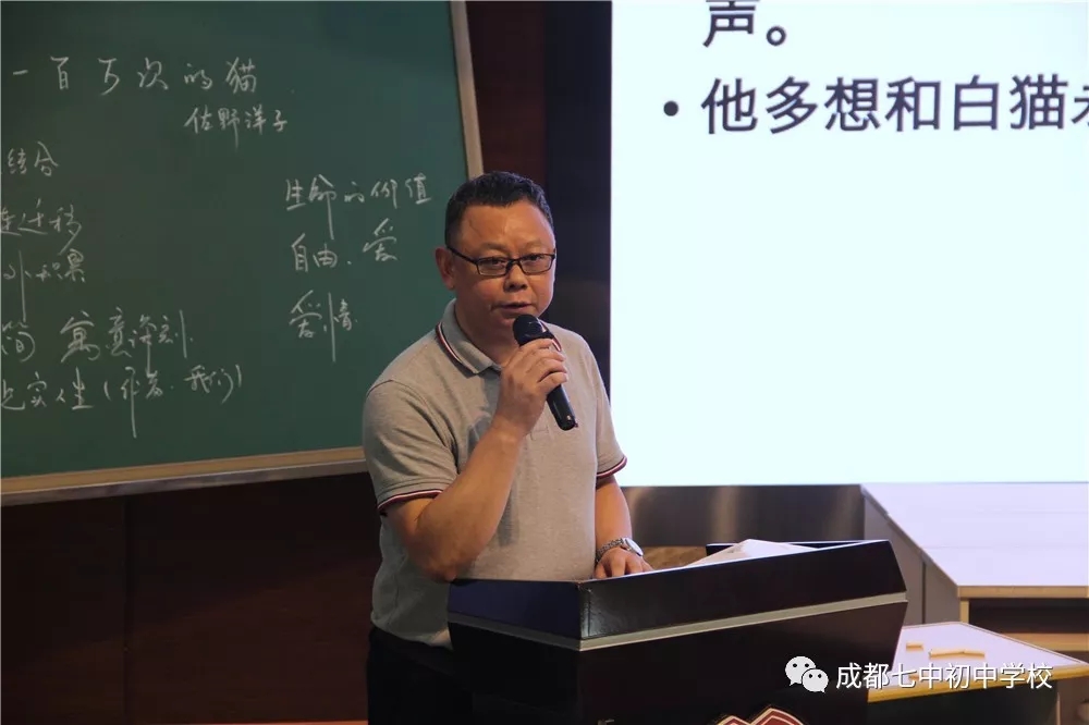 四川省教科院语文教研员何立新老师,成都市“未来学校”第三共同体成员学校的代表、甘孜州康定市第三中学以及甘孜州九龙县沙坪中学的领导和教师代表,成都七中初中学校全体教师参加了本次观课评课活动。