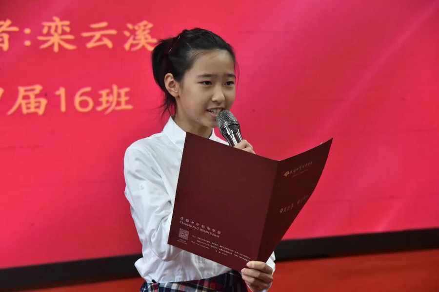9月16日,成都七中初中学校纪念“九一八”爱国主义演讲比赛在天环校区学术一厅顺利举行。选手们赛前进行了充分准备,由成都七中初中学校副校长朱文英、副校长何鑫、2027届年级组长姜文思、历史组教研组长廖莹莹、历史组向秀红老师等组成专业评审团,就主题立意、语言表达等多方面进行了综合考量与点评。