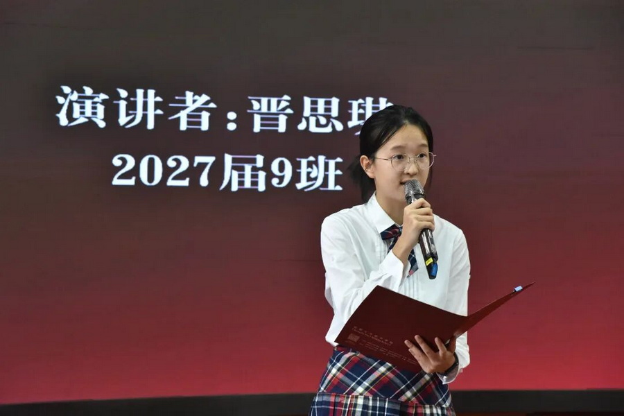 2027届16班栾云溪同学演讲事例丰富,她阐述了“和平不是天赐,而是靠实力赢取”的历史真谛,号召大家以奋斗者的姿态跑好民族复兴的接力赛。